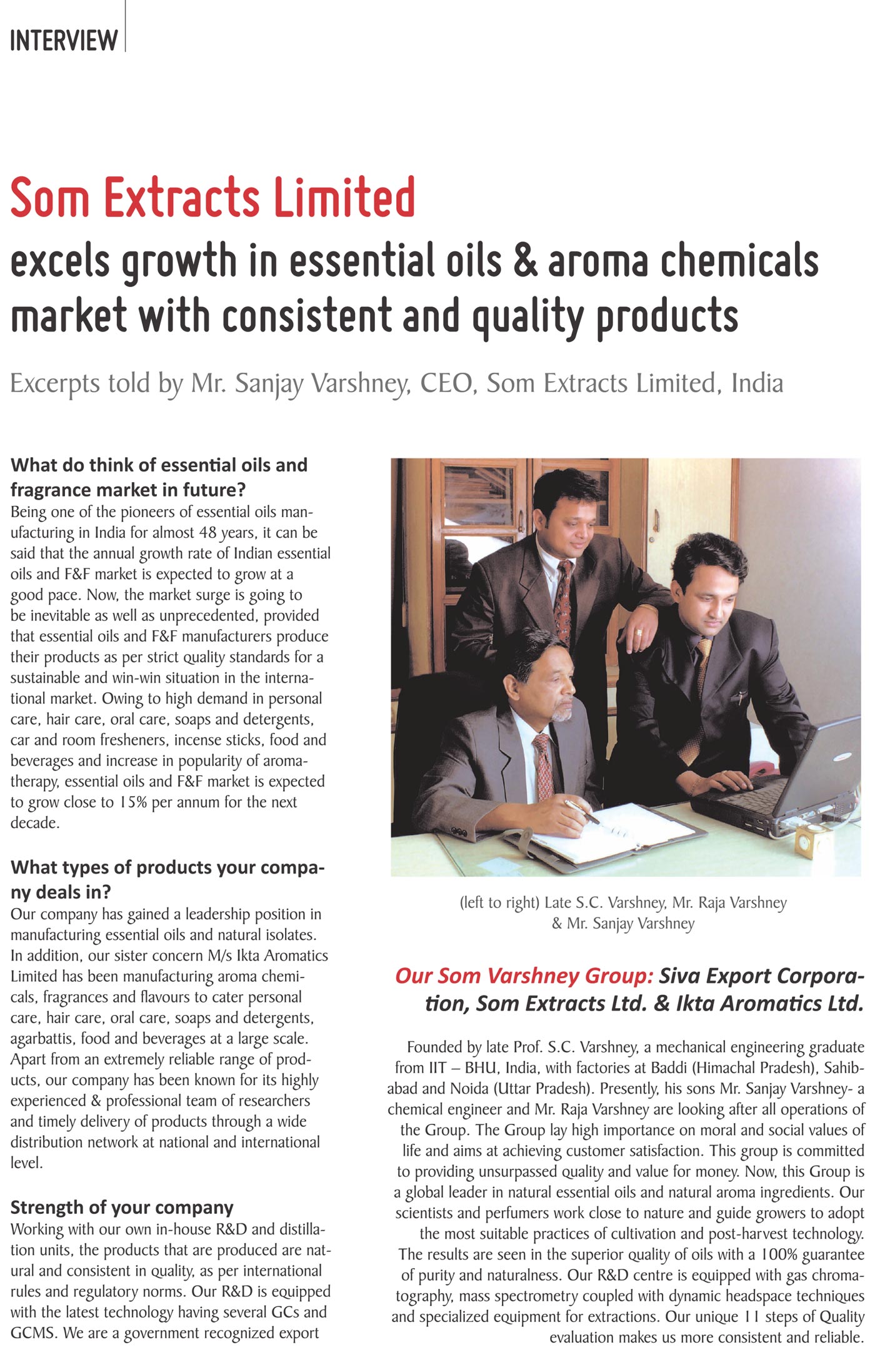 All Aromatic Chemicals Som Extracts Ltd. offers a wide portfolio of Aroma Chemicals for Fragrance, Flavor and Pharmaceutical Applications.